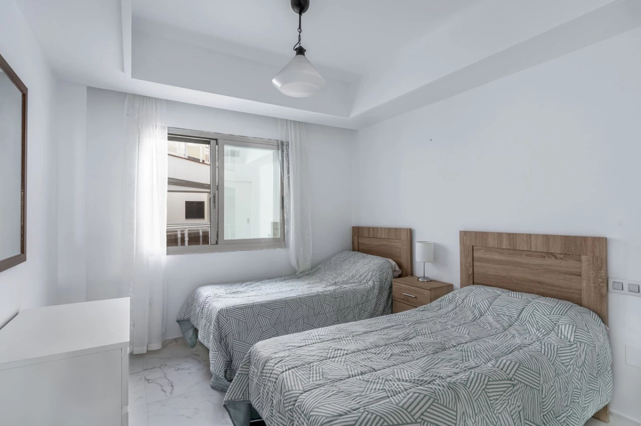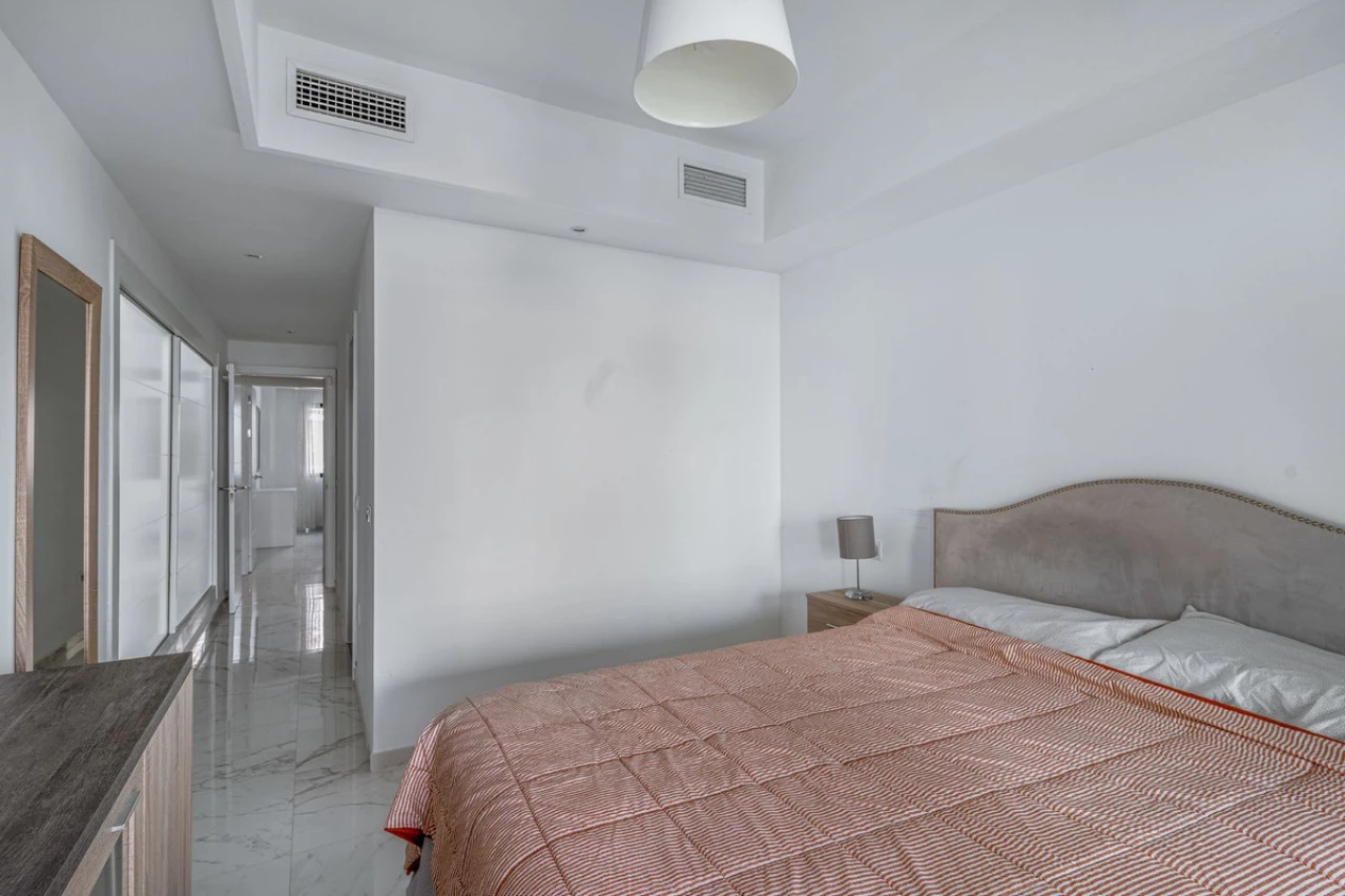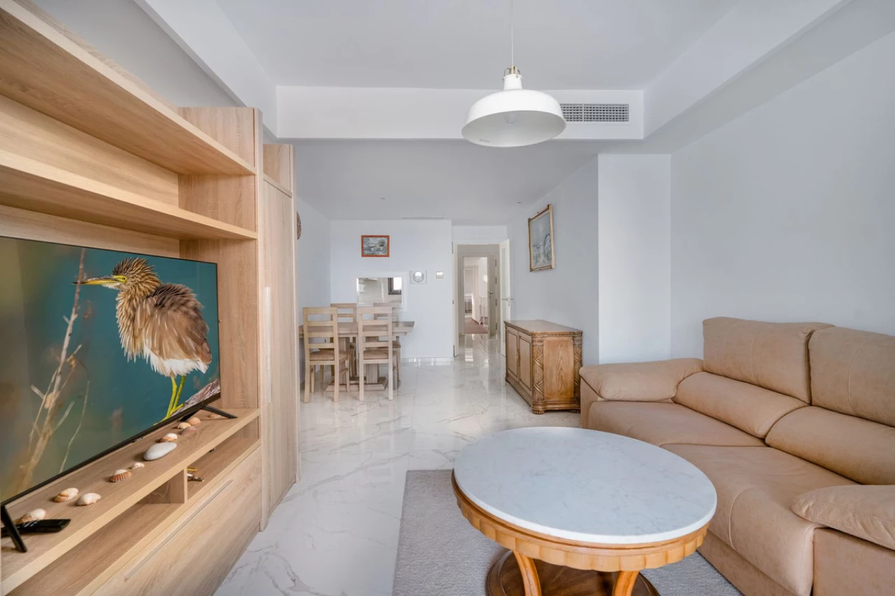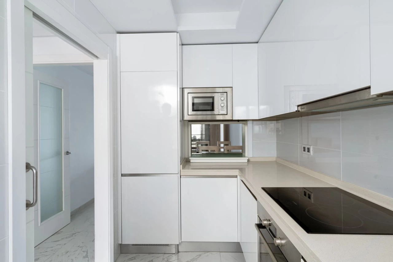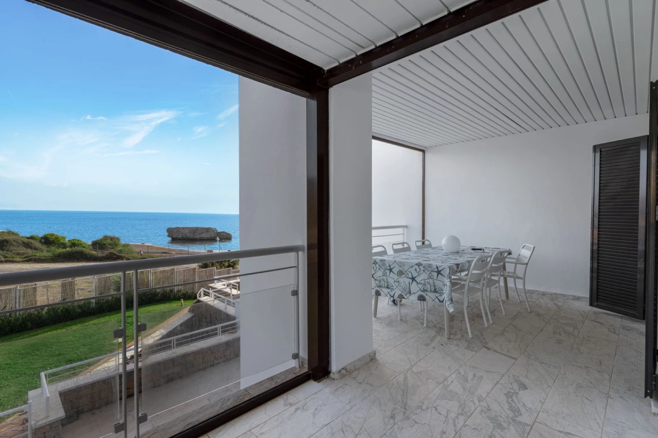 Stunning sea views: Frontline beach 2-bedroom 2-bathroom Apartment in luxury urbanisation with vast communal gardens and direct access to the beach promenade. This property enjoys panoramic sea views over the bay of Estepona. The apartment comes with 2 garage spaces included in the price, ensuring that parking is not a problem even in summer. The apartment has access to a large private terrace that has been enclosed with "lumon" crystal curtains – perfect for al fresco dining all year round. You can enjoy the beautiful sea views the property offers from the inside (living room & master bedroom) and out of the apartment. The modern, independent kitchen is fully fitted with top-of-the line appliances. The apartment is built to a very high standard with marble floors, hot/cold air conditioning using a heat pump and double glazing.