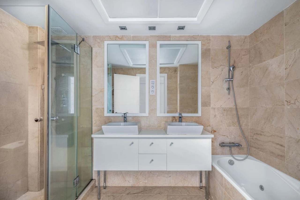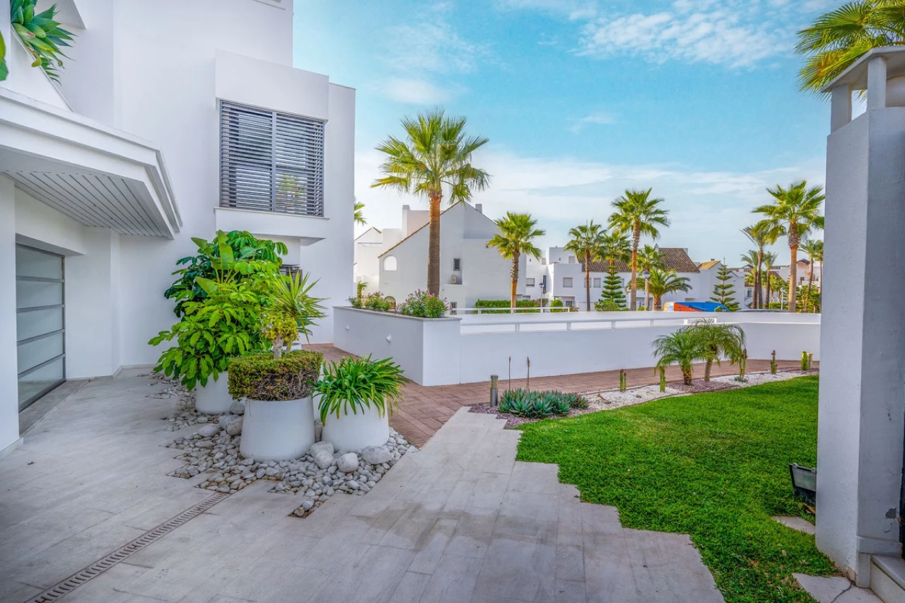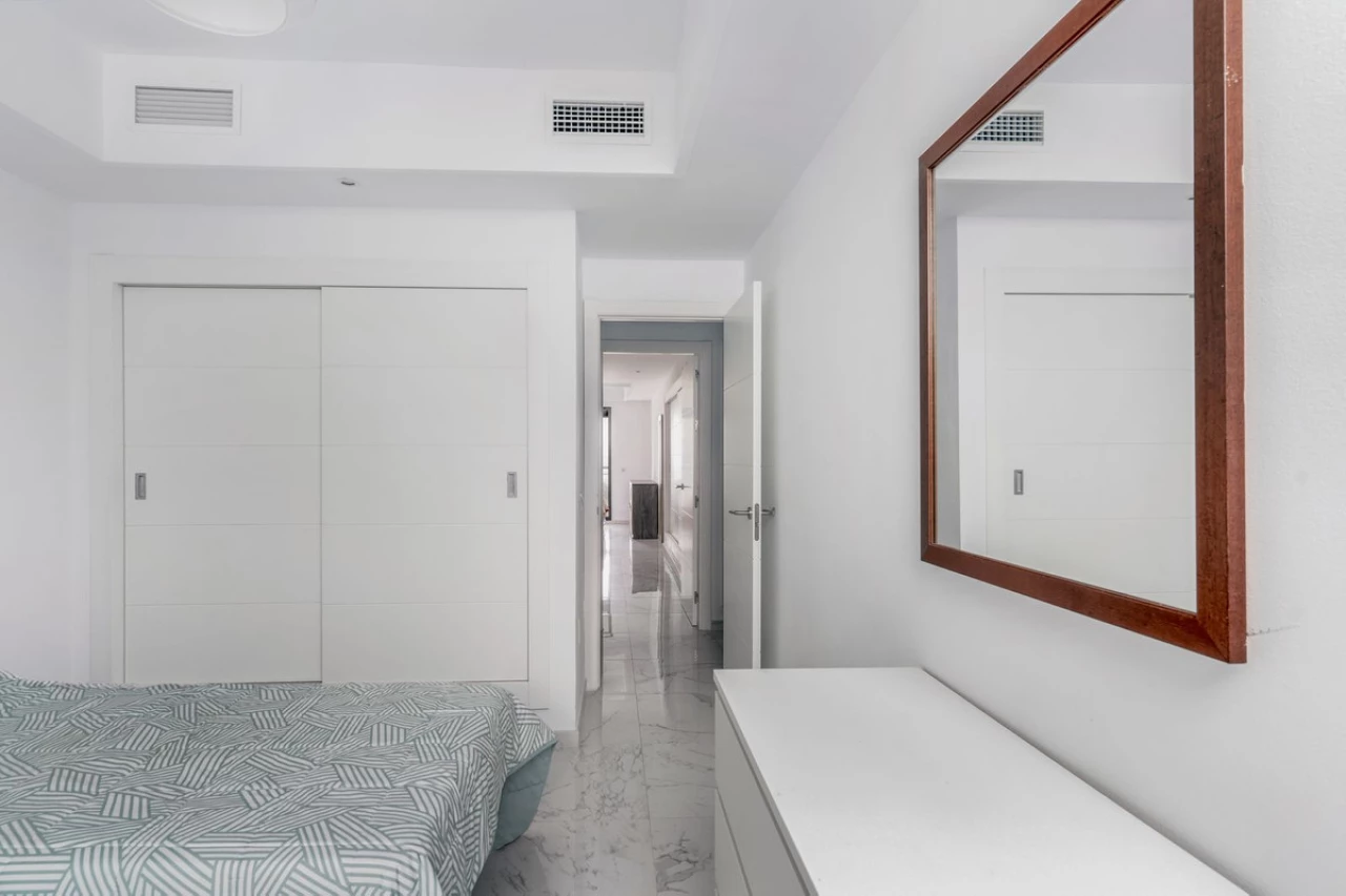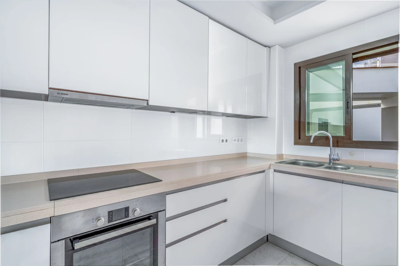 Stunning sea views: Frontline beach 2-bedroom 2-bathroom Apartment in luxury urbanisation with vast communal gardens and direct access to the beach promenade. This property enjoys panoramic sea views over the bay of Estepona. The apartment comes with 2 garage spaces included in the price, ensuring that parking is not a problem even in summer. The apartment has access to a large private terrace that has been enclosed with "lumon" crystal curtains – perfect for al fresco dining all year round. You can enjoy the beautiful sea views the property offers from the inside (living room & master bedroom) and out of the apartment. The modern, independent kitchen is fully fitted with top-of-the line appliances. The apartment is built to a very high standard with marble floors, hot/cold air conditioning using a heat pump and double glazing.