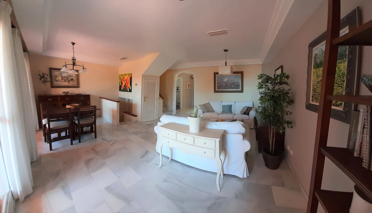 Beautiful 3 bedroom townhouse on the beachfront in one of the most exclusive areas of Estepona. The property has 3 floors. On the ground floor there is a large living-dining room with access to a magnificent terrace where you can enjoy spectacular views of the Mediterranean Sea. The magnificent independent kitchen has all the top brand appliances and space for a breakfast table. This floor also has a guest toilet. On the first floor there are 3 spacious bedrooms, the master bedroom has an en-suite bathroom and a large terrace with sea views. All three bedrooms have spacious fitted wardrobes. This property has a fantastic space in the semi-basement floor, ideal for social gatherings with a complete bathroom. The community is located in a privileged area 7 minutes from the centre of Estepona and with one of the best views on the Costa del Sol. The property has an optional parking space not included in the price.