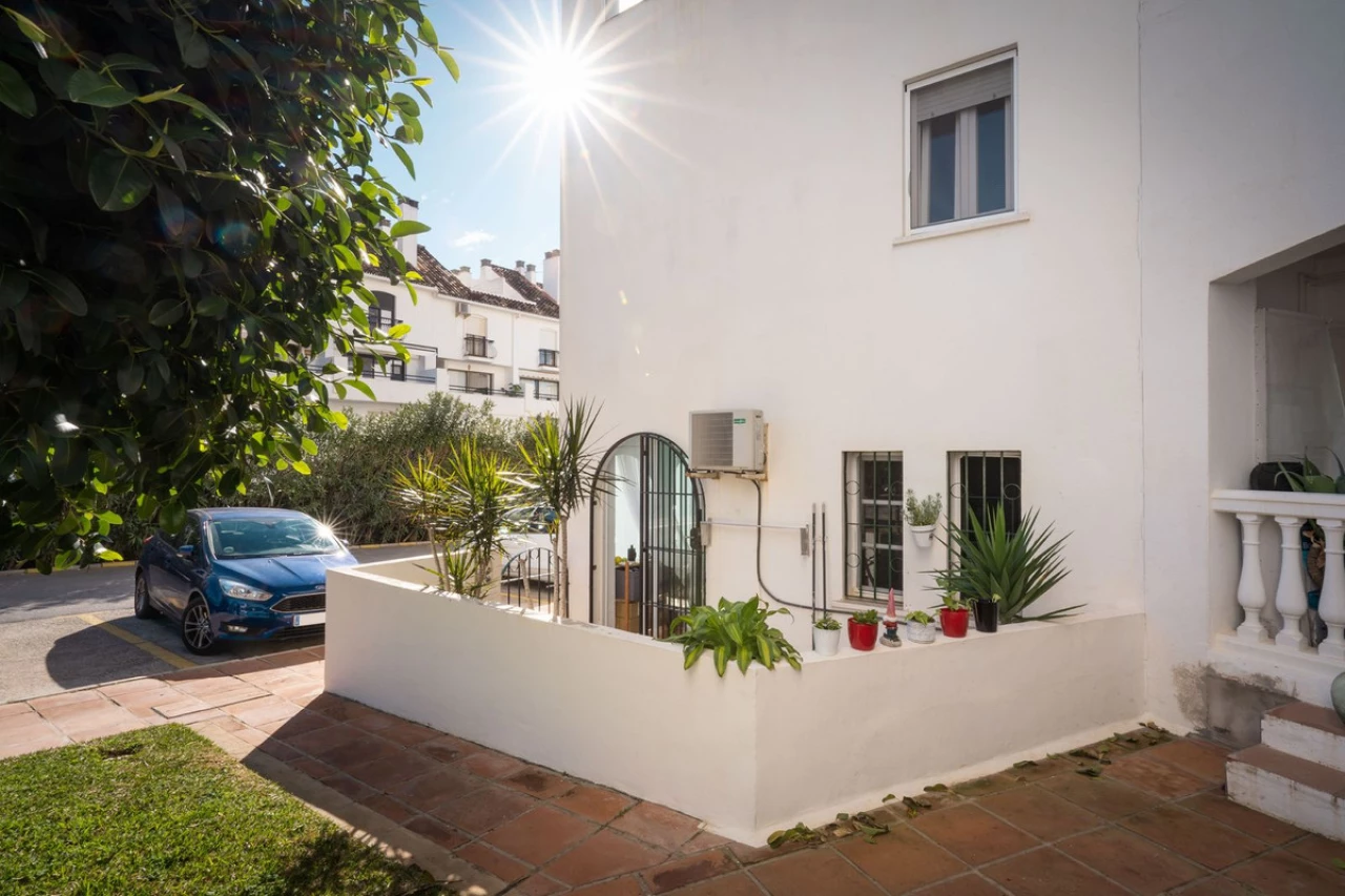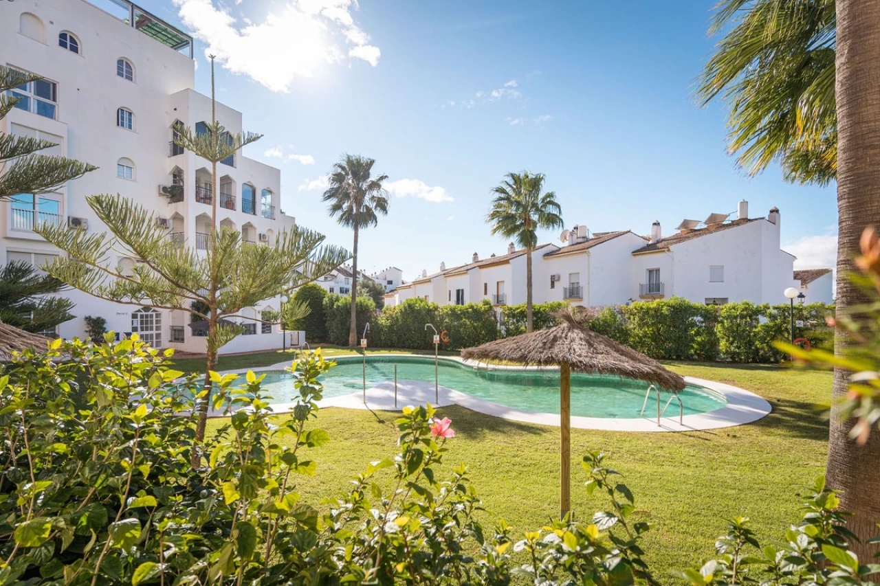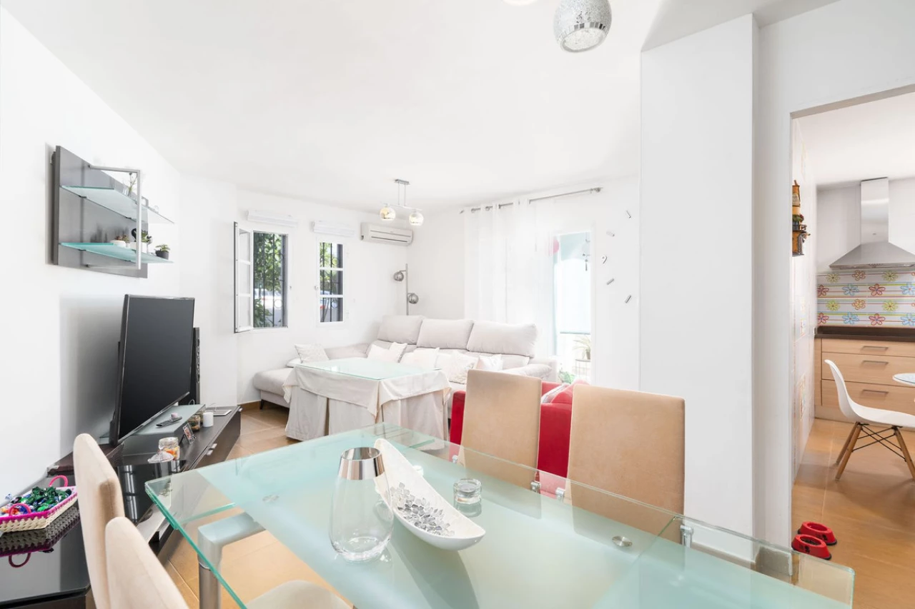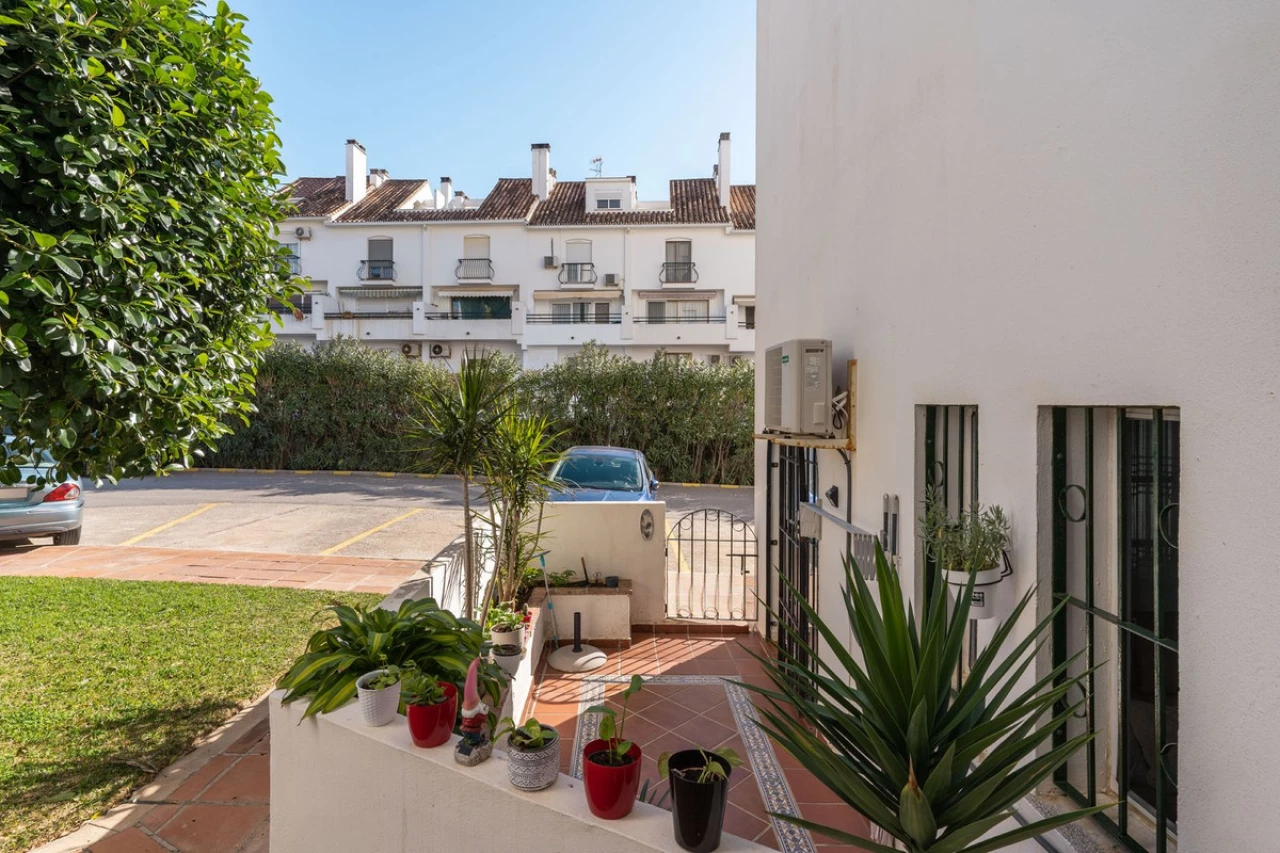 Lovely 3-bedroom ground floor duplex apartment in Seghers, Estepona. The apartment has 3 bedrooms, one full family bathroom with bathtub and a guess toilet. The large kitchen is independent and fully fitted with appliances. The living room is airy and of good size and leads to the covered terrace. It is currently used as study/storage. There is also an open terrace space that leads to the residential community areas. The furniture in the apartment is optional. It does include a parking space. The parking is open and communal. El residential is gated and have lovely green community areas and pool. The location is ideal, close to all kind of amenities within walking distance, like: schools, supermarkets, and restaurants. The closest beach is only 3 minutes' drive away (10 minutes' walk) and so is Estepona Port.