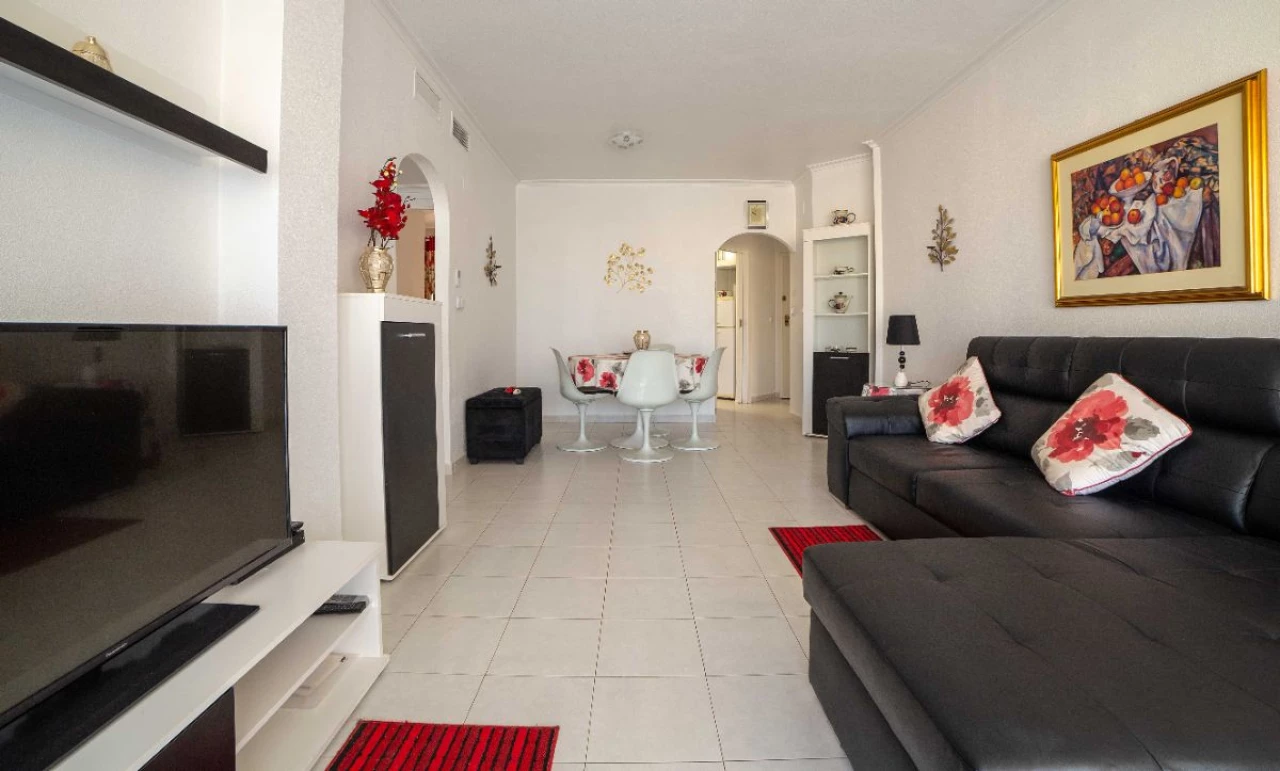 A South West facing 2 bed 2 bath 2nd floor apartment located in Aguamarina, Cabo Roig, Costa Blanca. This lovely property is offered for sale in good condition, fully furnished & very briefly consists of the following :- Lounge/diner, separate fully fitted kitchen, 2 x double bedrooms with fitted wardrobes, 2 x shower rooms, balcony off the lounge with a sun awning, communal swimming, underground parking space, furnished & much more. This property is located just a short walk from local bars, shops, restaurant, supermarket & the local bus stop. The golden beaches of Campoamor & Cabo Roig are just a few minutes walk away. There are 4 golf courses all within a 10 minute drive & Alicante airport is a 50 minute drive. Why Choose The Costa Blanca & Murcia regions of Spain? With property prices still around 50% of what they were in 2007/2008 properties are excellent value for money but be quick, prices are rising - buy now before the boom! Why Choose Solmar Estates? Whether you are looking to buy or sell a property Solmar Estates are your local resale property experts & we have a real passion for Spanish Property. We have been established in Spain since 2005 & we are a fully legal, fully registered & fully insured company. We are also verifiable members of the AIPP - The Association of International Property Professionals. We have built up our family run business based firmly around honesty, integrity and excellent customer care & service. We pride ourselves on understanding our client´s needs & we strive to ensure that your viewing experience is relaxed, un-pressured and most of all enjoyable. If you have a property to sell then we will use the latest systems, marketing techniques and online digital advertising media to ensure your property has the widest possible exposure to the biggest potential market. If you are planning a viewing trip to Spain do not waste your valuable time making appointments with numerous agents which can be very time consuming & costly. When you view with Solmar Estates we can show you any properties that you may see advertised online, no matter what agency they are advertised with & we offer to make a contribution towards your viewing trip costs when you purchase a property with us * We take the worry & stress out of the purchase or selling process by offering multi lingual legal services (purchase & selling conveyancing, NIE numbers, power of attorney, bank accounts, Spanish mortgages, utilities connection, tax returns, currency exchange etc.) Do you know someone else looking to buy a Spanish property? If so then refer them to us & receive 500 euros when they buy a property with us. * Do you know someone looking to sell a Spanish property? If so then refer them to us & receive 500 euros when we sell their property. * Properties always needed for waiting clients. * Terms & conditions apply - see solmarestates.com for details.