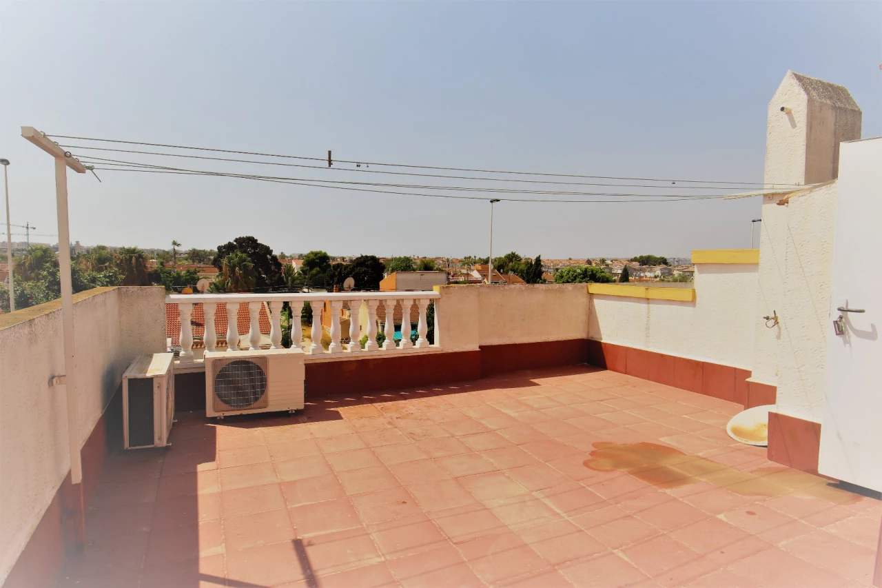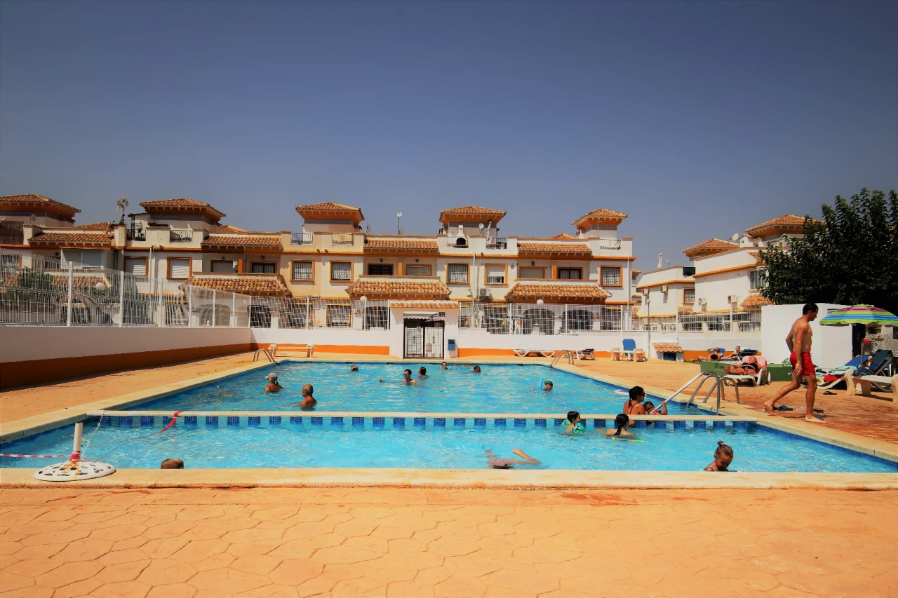 A South East facing 3 bed 2 quad house with a private rooftop solarium located in Jardin del Mar, Torrevieja, Costa Blanca. This property is offered for sale in good condition, furnished & very briefly consists of the following :- On the ground floor there is an L shape lounge/diner with hot and cold A/C & a ceiling fan, separate fully fitted kitchen with a door out to the side garden, 1 x twin bedroom with fitted wardrobes & 1 x shower room. On the 1st floor there are 2 x double bedrooms both with fitted wardrobes, the main bedroom has a private balcony & hot and cold A/C & 1 x bathroom. From the first floor internal stairs lead up to a small landing/storage area & out on to the private rooftop solarium. Outside there is a front terrace, a front garden with a driveway for off road parking & a lovely communal swimming pool. There are a selection of bars and restaurants (and public transport to nearby Torrevieja) all within a few minutes walk. The beach is around a 10 minute drive & Alicante airport is 30 minute drive away & the new Murcia Corvera airport is 45 minute drive. Why Choose The Costa Blanca & Murcia regions of Spain? With property prices still around 50% of what they were in 2007/2008 properties are excellent value for money but be quick, prices are rising - buy now before the boom! Why Choose Solmar Estates? Whether you are looking to buy or sell a property Solmar Estates are your local resale property experts & we have a real passion for Spanish Property. We have been established in Spain since 2005 & we are a fully legal, fully registered & fully insured company. We area also verifiable members of the AIPP - The Association of International Property Professionals. We have built up our family run business based firmly around honesty, integrity and excellent customer care & service. We pride ourselves on understanding our client´s needs & we strive to ensure that your viewing experience is relaxed, un-pressured and most of all enjoyable. If you have a property to sell then we will use the latest systems, marketing techniques and online digital advertising media to ensure your property has the widest possible exposure to the biggest potential market. If you are planning a viewing trip to Spain do not waste your valuable time making appointments with numerous agents which can be very time consuming & costly. When you view with Solmar Estates we can show you any properties that you may see advertised online, no matter what agency they are advertised with & we offer to make a contribution towards your viewing trip costs when you purchase a property with us * We take the worry & stress out of the purchase or selling process by offering multi lingual legal services (purchase & selling conveyancing, NIE numbers, power of attorney, bank accounts, Spanish mortgages, utilities connection, tax returns, currency exchange etc.) Do you know someone else looking to buy a Spanish property? If so then refer them to us & receive 500 euros when they buy a property with us. * Do you know someone looking to sell a Spanish property? If so then refer them to us & receive 500 euros when we sell their property. *