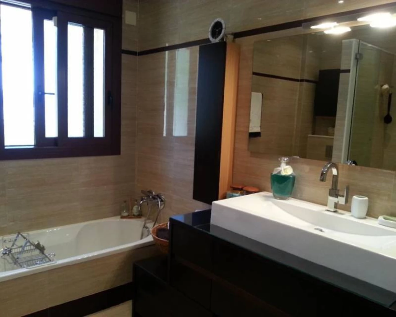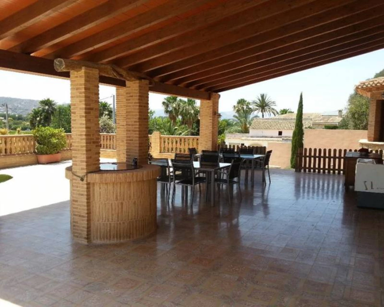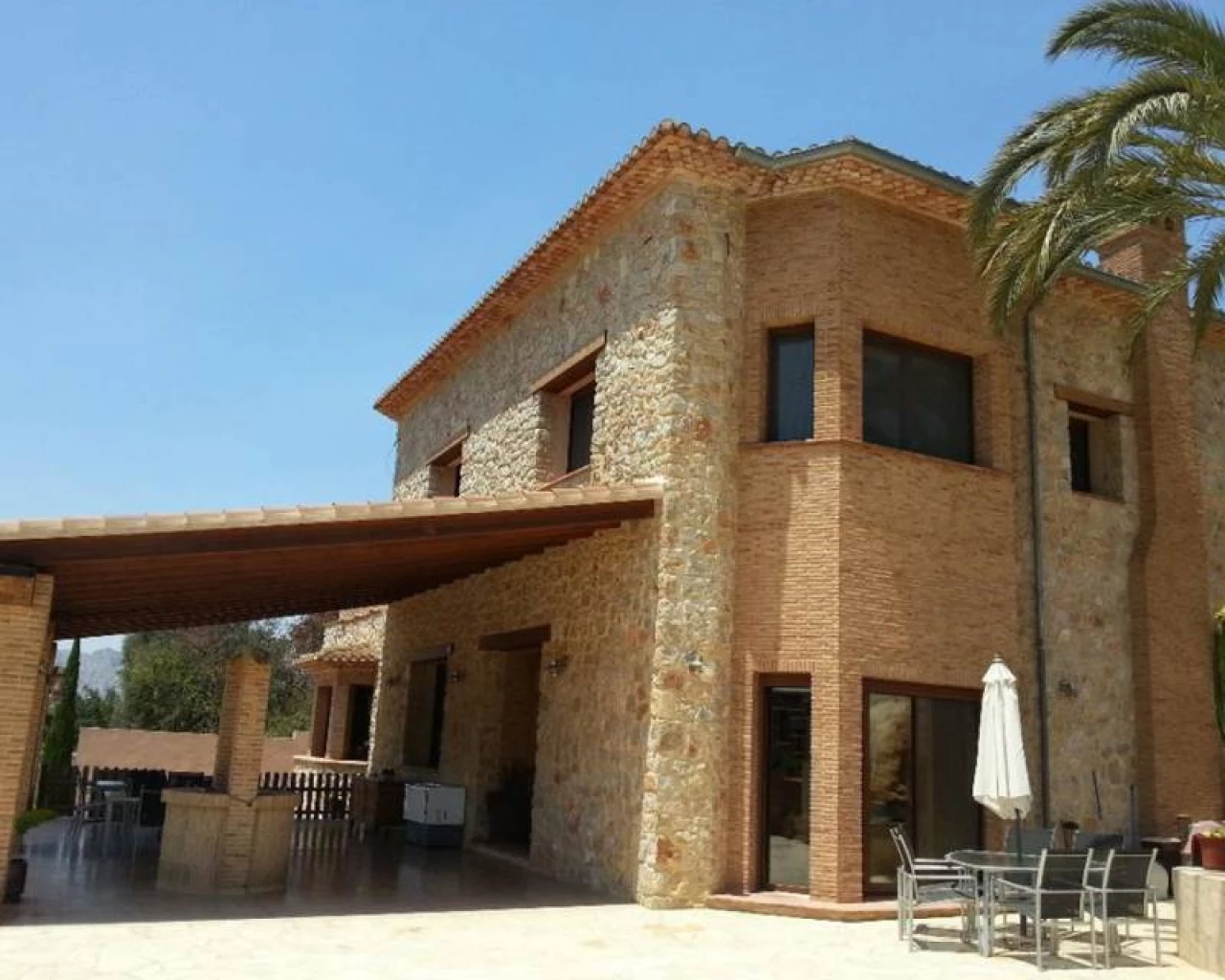 Modern designer detached villa in Pedreguer located in a no through road so traffic free. Beautiful pool area with beach entry and waterfall. Garage with automatic door control and alarm system throughout the house. Ample terraces and seating areas. Automatic entry gate with remote control and electric perimeter fencing for dogs. 4000m2 fenced plot with fruit trees and a further 5000m2 of mountain/rustic land. Velux roof windows with remote control to open and rain sensors for automatic closing, all of this based on an iron structure to avoid high humidity, PVC windows, rolling mosquito nets automated security in all windows shutters and doors, central locking of all blinds. Automated irrigation throughout the plot. Irrigation water pumped from a well which collects rainwater for cistern.