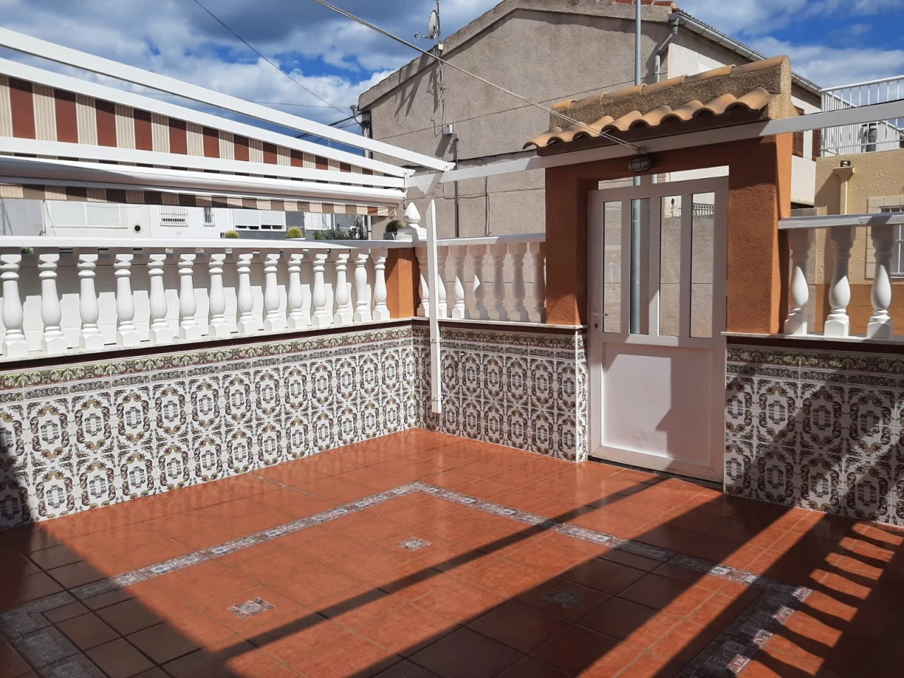 3-Bedroom townhouse close to the beach for sale in Torrevieja SPAIN ESTATE offers this fantastic property 300 METERS FROM EL ACEQUIÓN AND LOS NAÚFRAGOS BEACHES. This home has a built surface of 140 sq m and it is distributed of 2-storey. On the ground floor we acces to he house trough a south-facing large patio with new awings. Large living-dining room with great chimney, 1 bathroom, 1 double kitchen fully furnished and equipped, a second living-dinning room with access to the closed garage and storage room and with access from the back street. On the first floor we will find a hall with 1 fitted built-in wardrobe, 2 double bedrooms, 1 bathroom and 1 single bedroom with access to a large roof terrace northwest facing and with nice open views to a park. This townhouse has been renovated recently (electricity, water pipes, floors, etc, everything with high quality materials). It is sold in excellent condition and fully furnished, ready to move into. Tfhe nearby beach of Los Naúfragos has access for people with reduced mobility, which facilitates access for the elderly, strollers, etc. With this townhouse very close to the sea for sale in Torrevieja you will have everything at your fingertips This home is very close to the Mediterranean sea in Torrevieja, 300 meters from 2 beaches. and it has all the necessary services at a step : health center, school, restaurants, supermarkets, pharmacy, hairdresser, and public bus stop very close. Enjoy a very good transport communication through the N-332 road, so it is just a few minutes drive from the beaches of Orihuela Costa, La Mata and Guardamar, La Zenia shopping center, golf courses as such Villamartin or Vistabella, and only 40 km from the Alicante airport, El Altet. More information: + 34 650 569 569