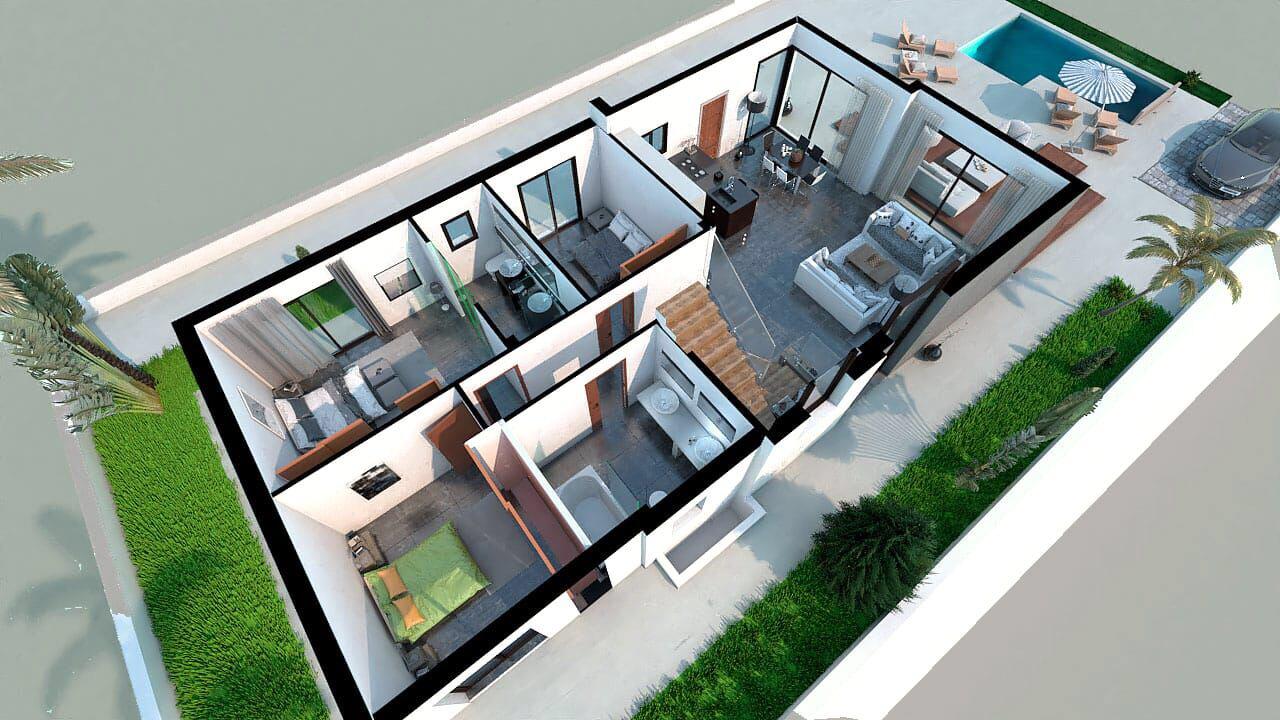 One level luxury villa for sale in Ciudad Quesada. Unique key ready home with solarium and basement. This residential complex is located in a privileged area where you can enjoy the harmony of nature. It consists of 10 completely independent villas built with high quality materials. There is the possibility of choosing 3 models of this chalet, all with 3 bedrooms on the ground floor, basement and / or optional solarium. The villas have a private pool, underfloor heating in bathrooms, Bizone air conditioning, rammed garage doors, double glazed windows ... Quesada City This house for sale is located in Ciudad Quesada, one of the best urbanizations to live in Rojales . The population is 13,776 inhabitants and it is located in the southern area of Rojales about 6 km from the Mediterranean Sea where the majority of the population is foreigners, mainly English. Ciudad Quesada, a perfect place where you will always find something to do with entertainment venues every day , both in summer and winter, with or without children. Your ideal home near the sea in Spain. Kilometers of fine sand beaches and very clean waters await you here. It may seem idyllic, but no, because it is a reality. During the summer, beaches that invite you to stretch the towel and lie down to enjoy your free time and the good weather on the Costa Blanca . In Ciudad Quesada you will find countless restaurants of all kinds to choose what you want, and being a coastal city it is a magnificent Spanish tourist destination that includes authentic havens of peace, among which are the best restaurants in Ciudad Quesada that will surprise you. pleasantly at dinner time. You can also enjoy the Mediterranean climate by playing golf at "La Marquesa Golf", just 10 minutes away by car. Alicante airport is only 40 minutes away by car Finca Spain Maria Parodi Street No. 2 Torrevieja 03181 (Alicante). (+34) 671200307 (+34) 966056676 Email: [email protected]