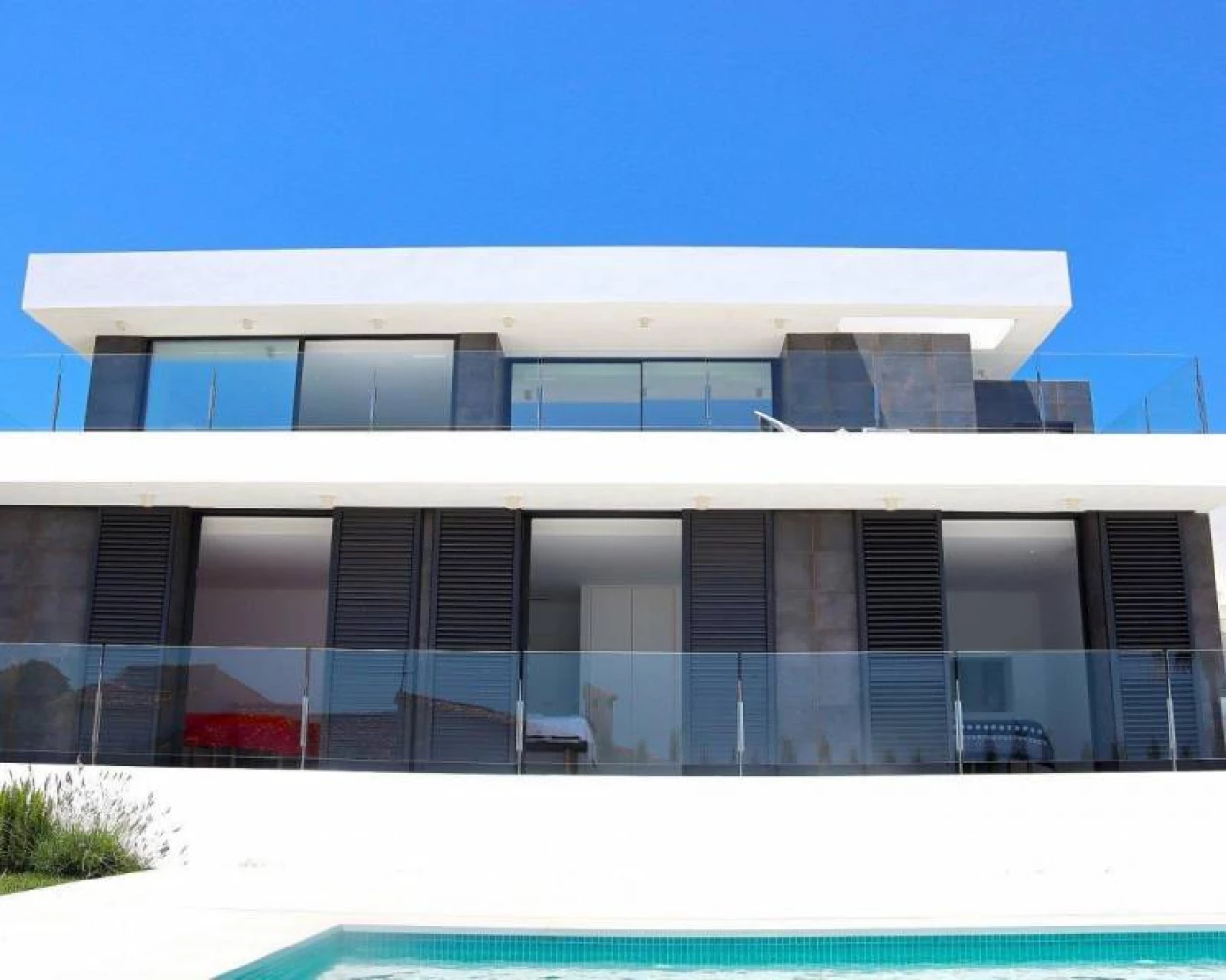 New construction of modern villa in Moraira, in a quiet environment with excellent views of the sea and a few kilometers from major cities such as Calpe, Dénia or Benidorm. The ground floor of 137,91m2 has 4 bedrooms; 1 bedroom suite with dressing room, 1 bedroom with bathroom en suite and 2 bedrooms that share a separate bathroom. In addition on the same floor there is a covered terrace (15,19m2) and another open (30,10m2). The first floor of 84.88m2 has a living room with open and equipped kitchen, a toilet and large covered terraces (14.35m2) and open (48.50m2). The basement floor of 64.31m2 includes storage, laundry, and a toilet. It will also be possible, at the request of the client, to make an extension of more than 120m2 for various uses (gym, cinema, bedrooms ...). As extras you have: automatic entrance doors, led lighting in all instances, air conditioning, underfloor heating, climate control and lighting. The perfect property to enjoy life on the Costa Blanca.