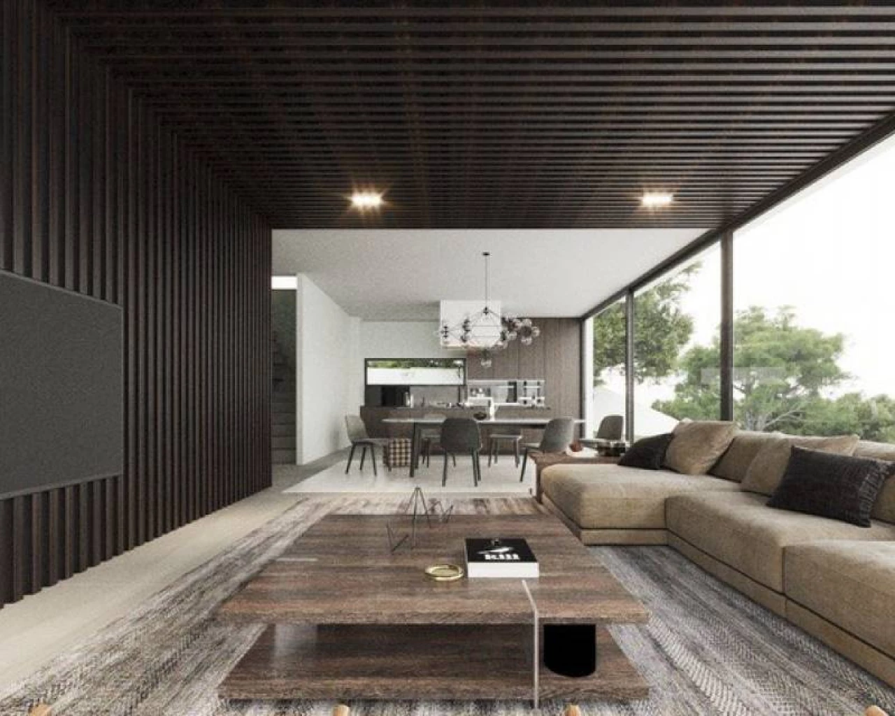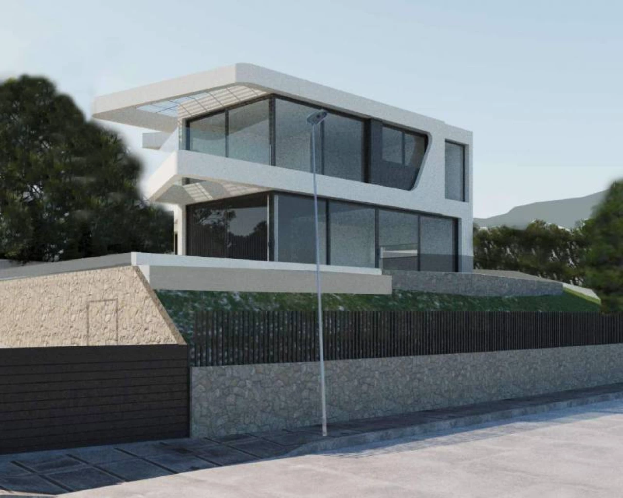 This modern house is located in Altea la Vieja. Distributed over two floors, this house offers on the main floor a bedroom with bathroom en suite and a large kitchen with kitchenette that connects with the living room. From here large windows give access to the terrace with pool and barbecue area. On this floor there is also a large garage with space for two cars. On the first floor there are 2 more bedrooms, each with en-suite bathroom, separated by a living room. The entire first floor opens onto a large terrace from which you can fully enjoy the view. The house is equipped with underfloor heating, air conditioning, barbecue area, ...