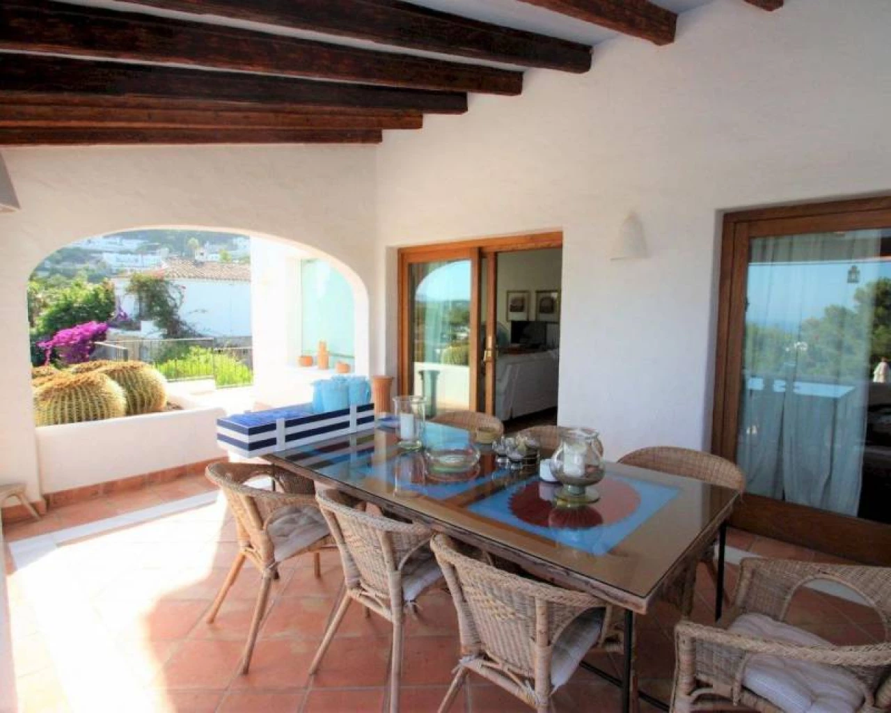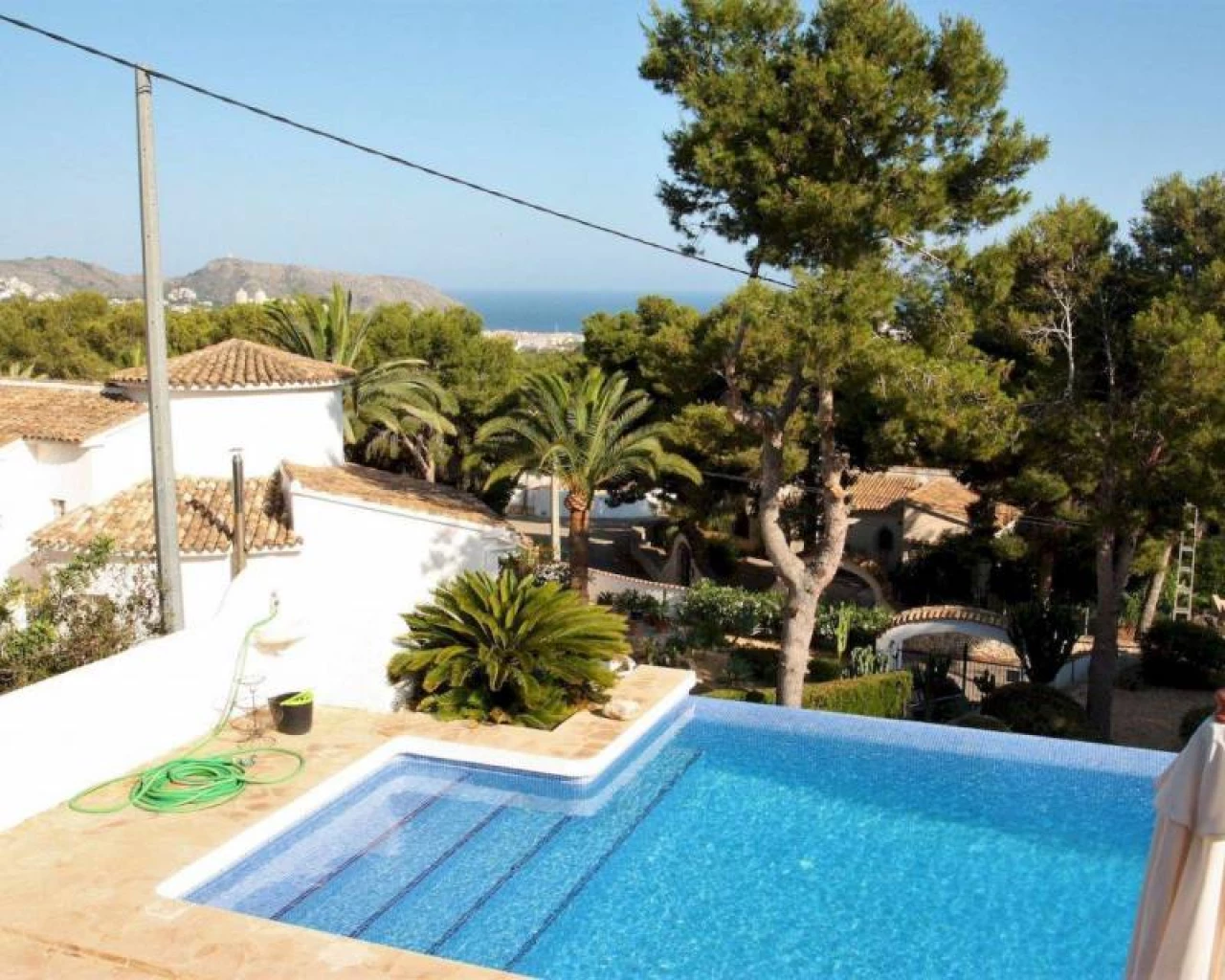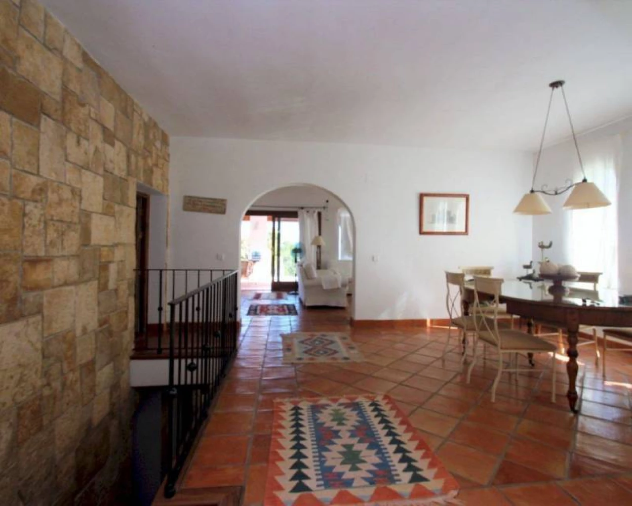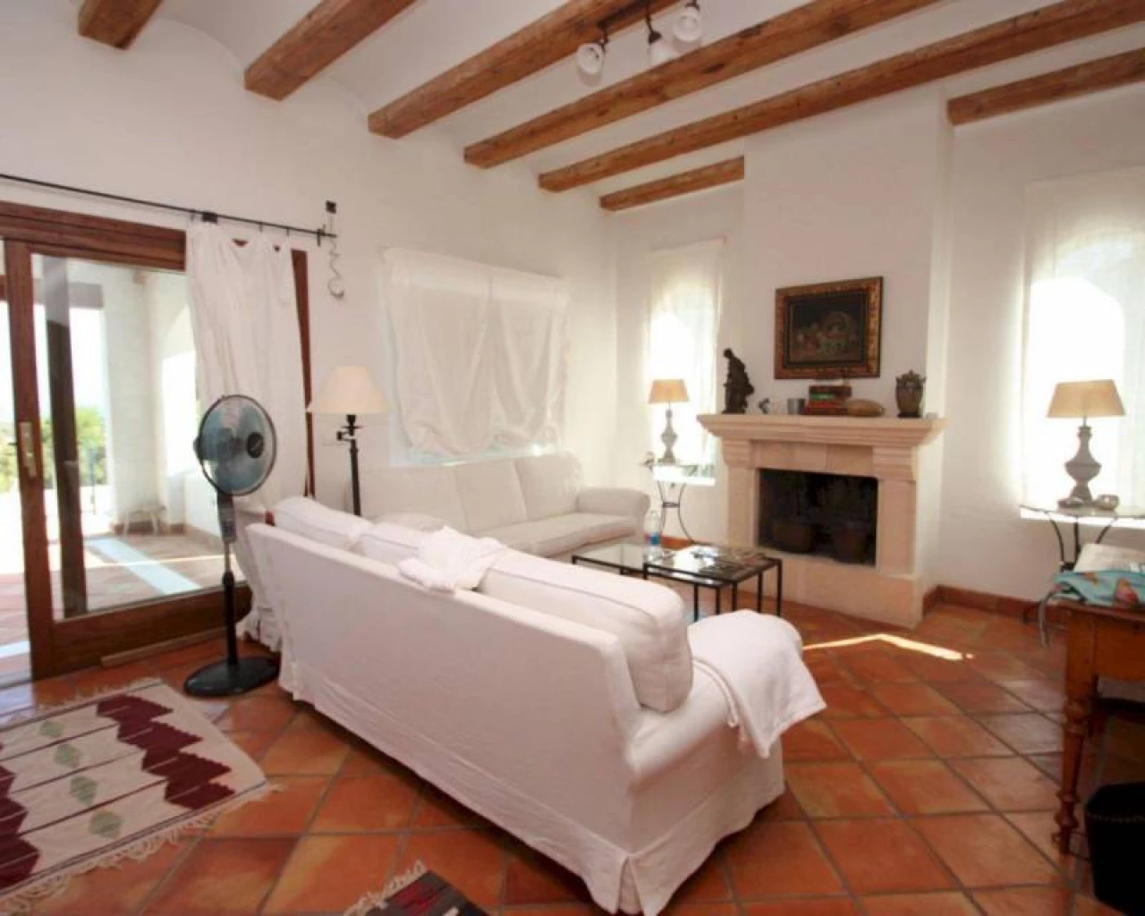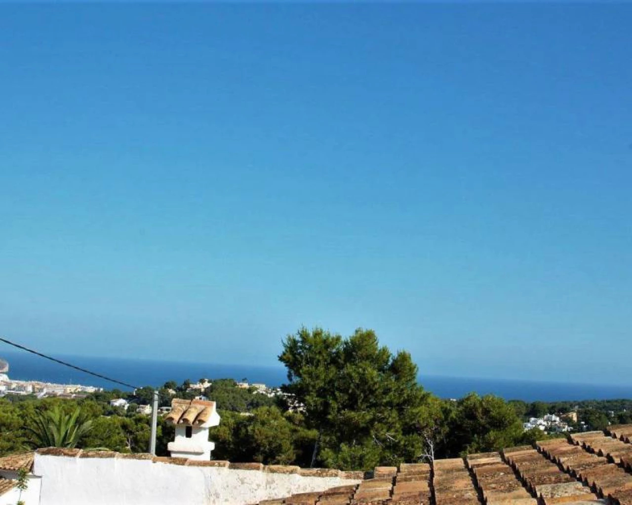 Beautiful rustic style villa for sale in Moraira, with beautiful panoramic and sea views. On a plot of 1700 m2 is this beautiful Villa with a useful area of 500m2, facing south and consisting of 5 bedrooms, 3 bathrooms en suite, large living room, kitchen, and covered terrace. It also has a wine-cellar, double garage and a billiard room with table football. The property is equipped with underfloor heating. You can also enjoy the Mediterranean climate with the open terrace with the 10x5m pool, and the beautiful garden with trees. Beautiful property in an ideal location to enjoy life on the Costa Blanca.