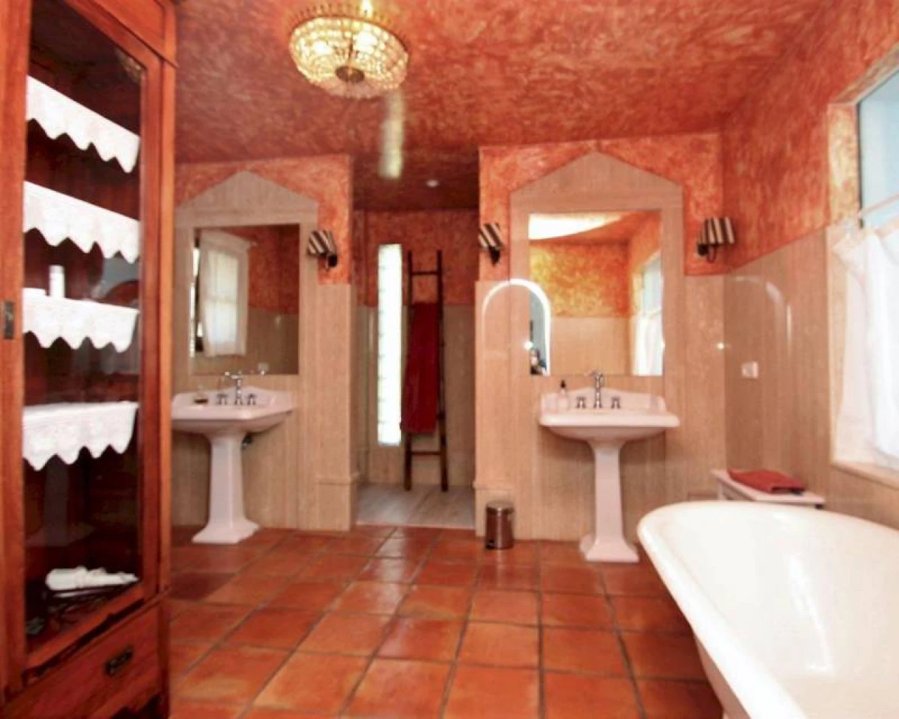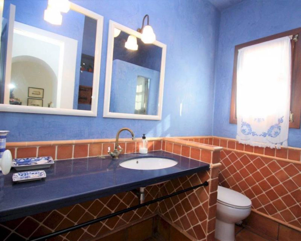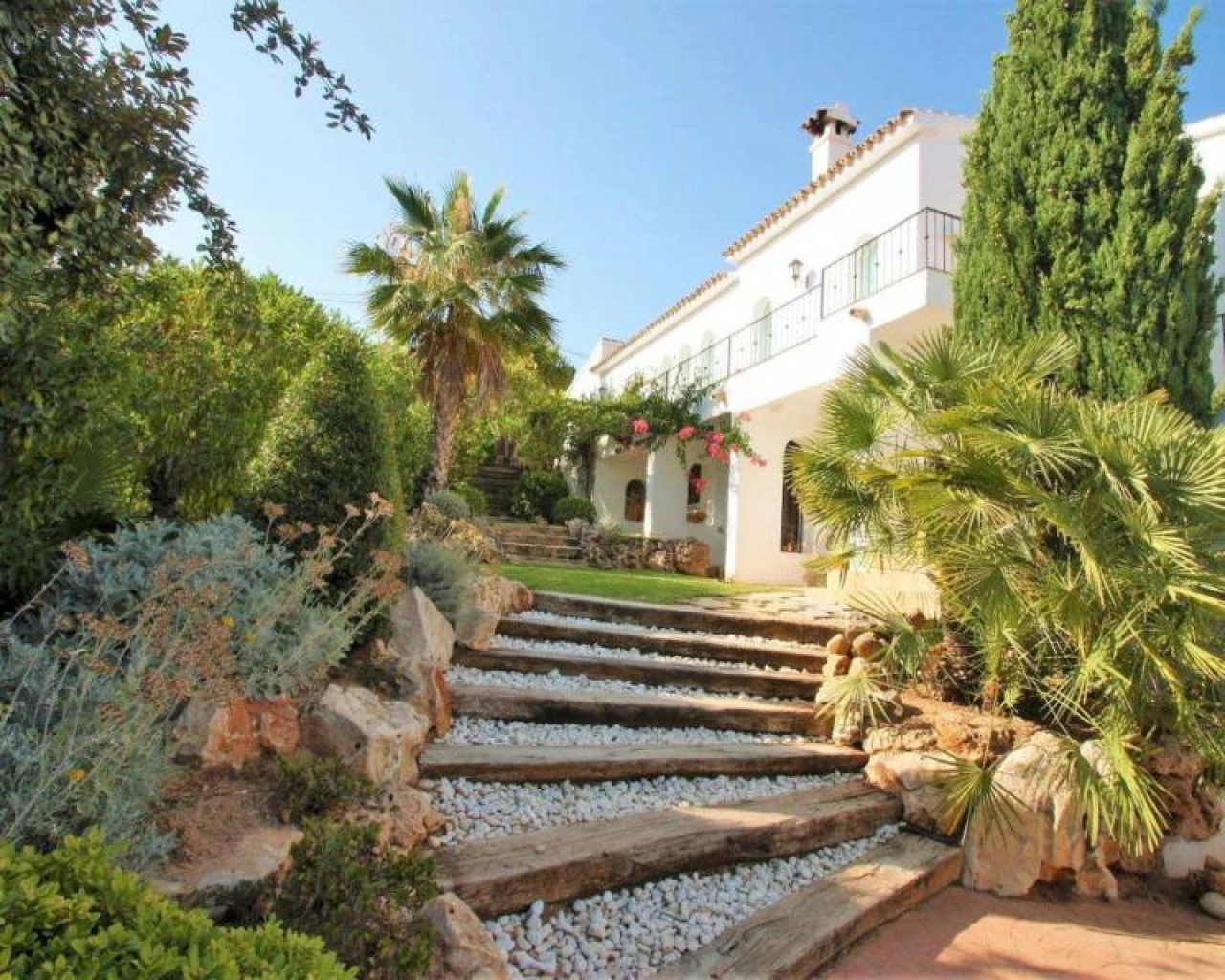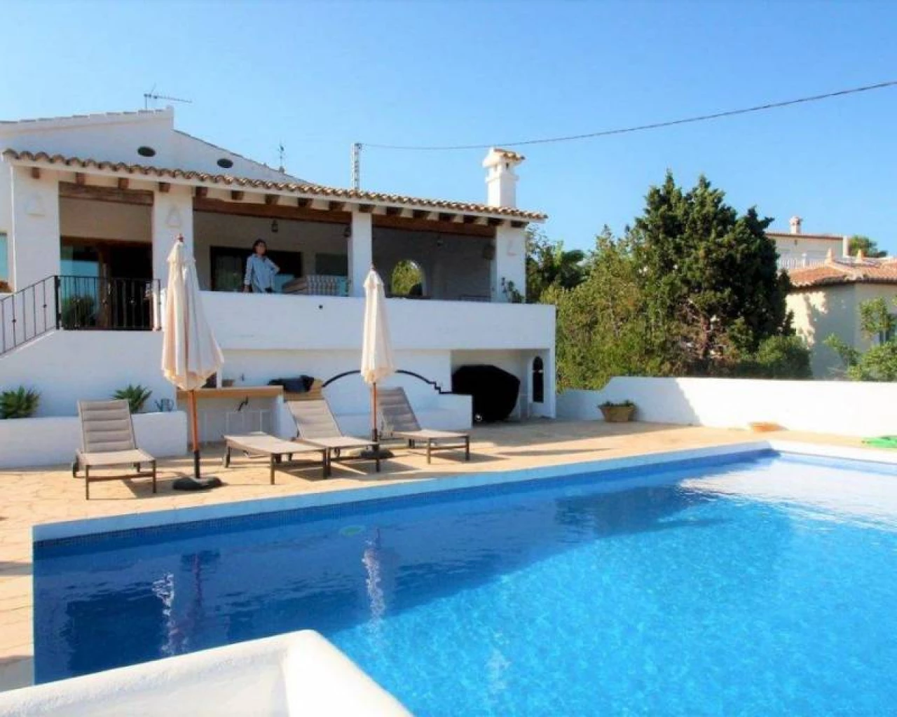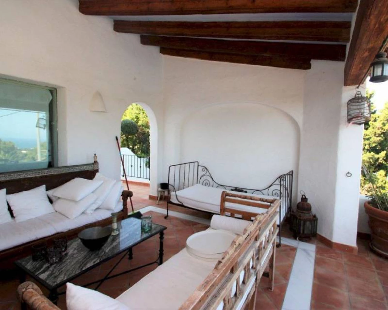 Beautiful rustic style villa for sale in Moraira, with beautiful panoramic and sea views. On a plot of 1700 m2 is this beautiful Villa with a useful area of 500m2, facing south and consisting of 5 bedrooms, 3 bathrooms en suite, large living room, kitchen, and covered terrace. It also has a wine-cellar, double garage and a billiard room with table football. The property is equipped with underfloor heating. You can also enjoy the Mediterranean climate with the open terrace with the 10x5m pool, and the beautiful garden with trees. Beautiful property in an ideal location to enjoy life on the Costa Blanca.