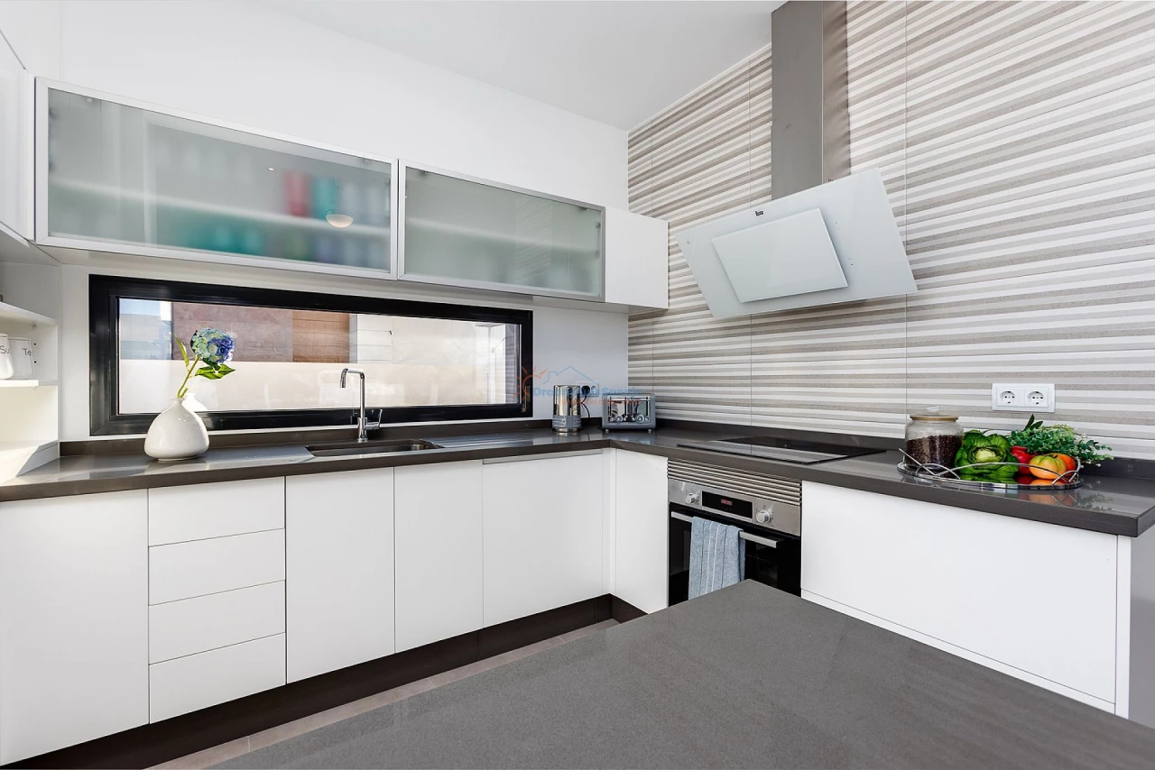 Single storey villa with 3 bedrooms in popular residential area. Modern single storey villa in Pilar de la Horadada, a popular residential area in the Costa Blanca South. Near the city center, where a wide variety of shops, restaurants and bars are available. Just a few minutes drive from Lo Romero golf course and very close to Higuericas beach in Torre de la Horadada, the coastal area of the municipality. Perfectly connected by road to the main towns of the province such as Torrevieja, Guardamar, as well as the city of Alicante. Single storey villa, built on a plot of 210 m2, with 3 bedrooms and 2 bathrooms. The cozy spacious living area combines the living room, dining room and kitchen with direct access to the terrace, garden and pool. The master bedroom has its own bathroom. The garden with its terraces are the ideal spaces to enjoy the Mediterranean lifestyle in the open air. This unique villa includes pre-installation for air conditioning, electric shutters, fitted wardrobes, fully equipped kitchens with white goods, indoor & outdoor lighting and on-site parking.