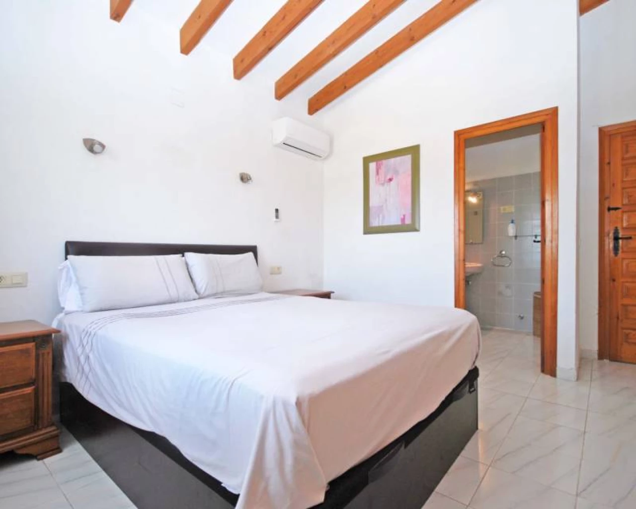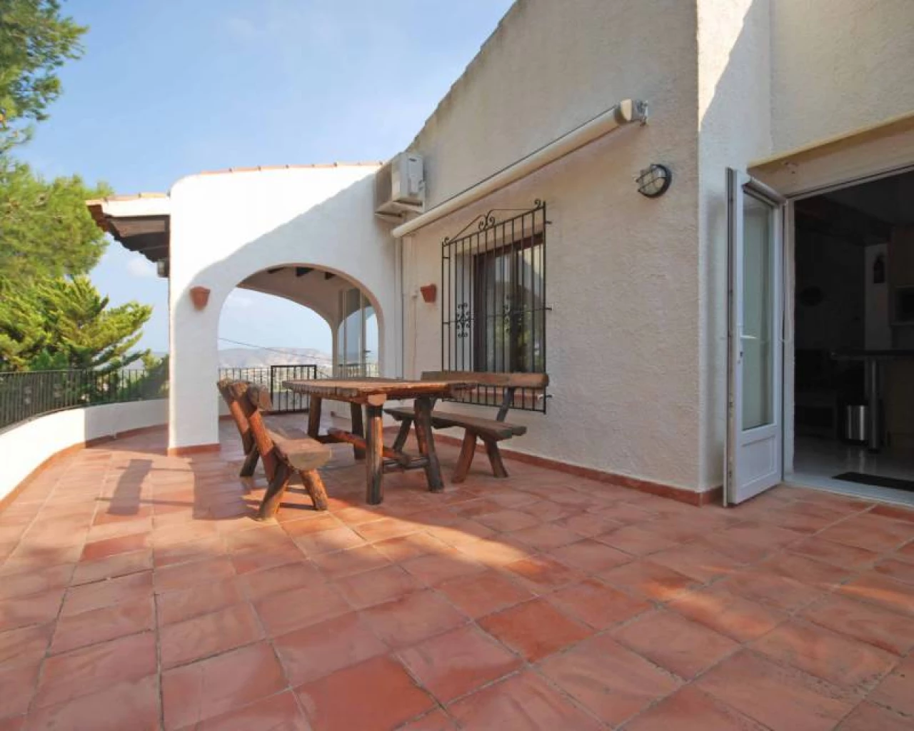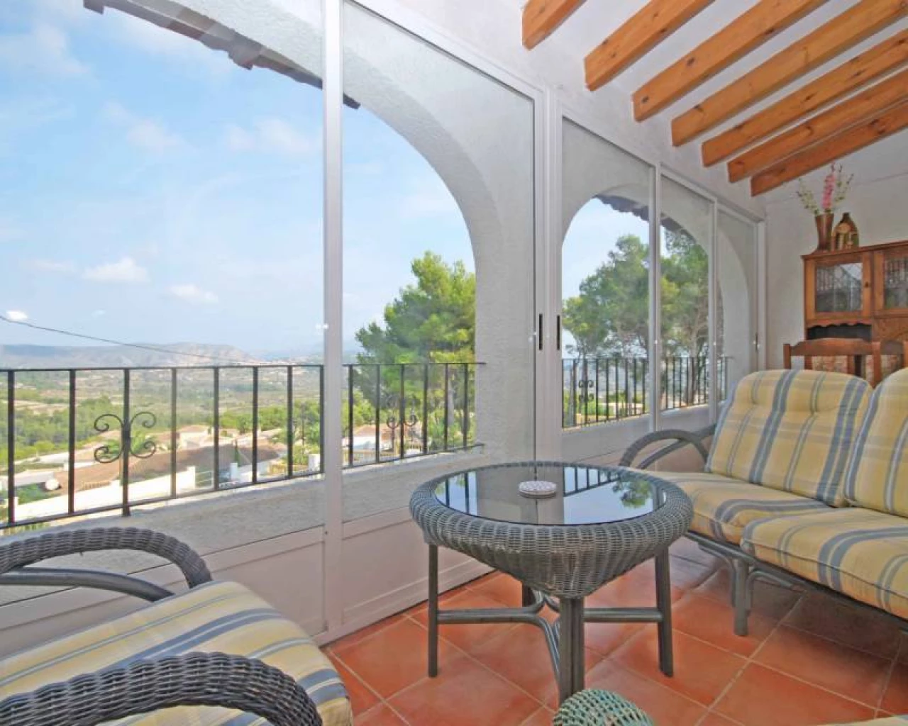 This three bedroom property offers an 8 x 4 m pool, several terraces, separate storage/laundry room, nice garden and offroad parking. The villa consists of a nice glazed in naya from which you can enjoy the fantastic mountain views, living / dining area, open plan kitchen, 3 bedrooms and 2 bathrooms, all on one level. The master bedroom has an en-suite bathroom. Further features: airconditioning, gas central heating and shutters in bedrooms.