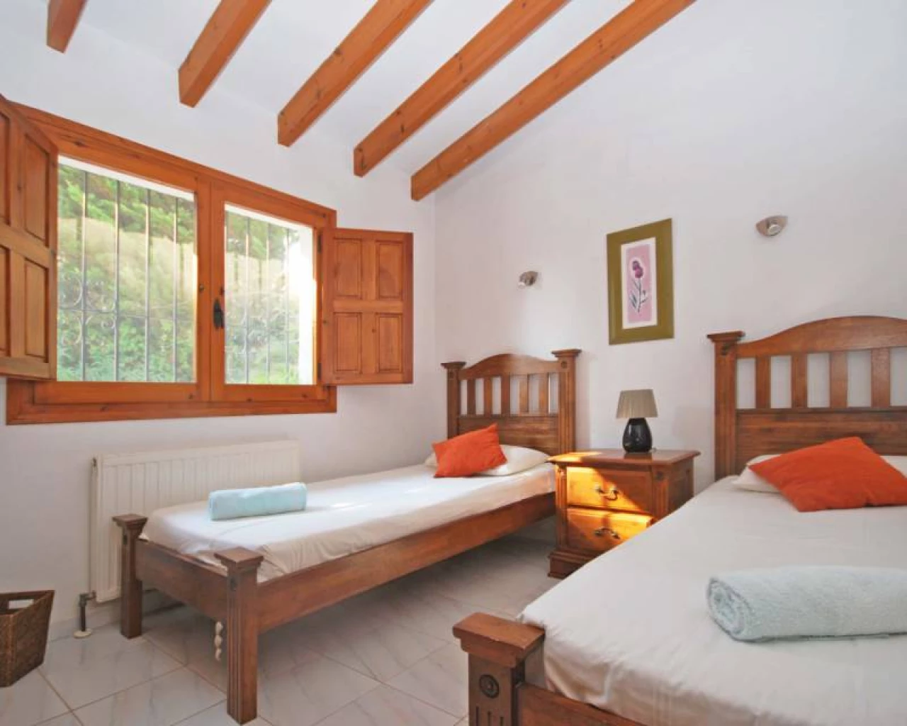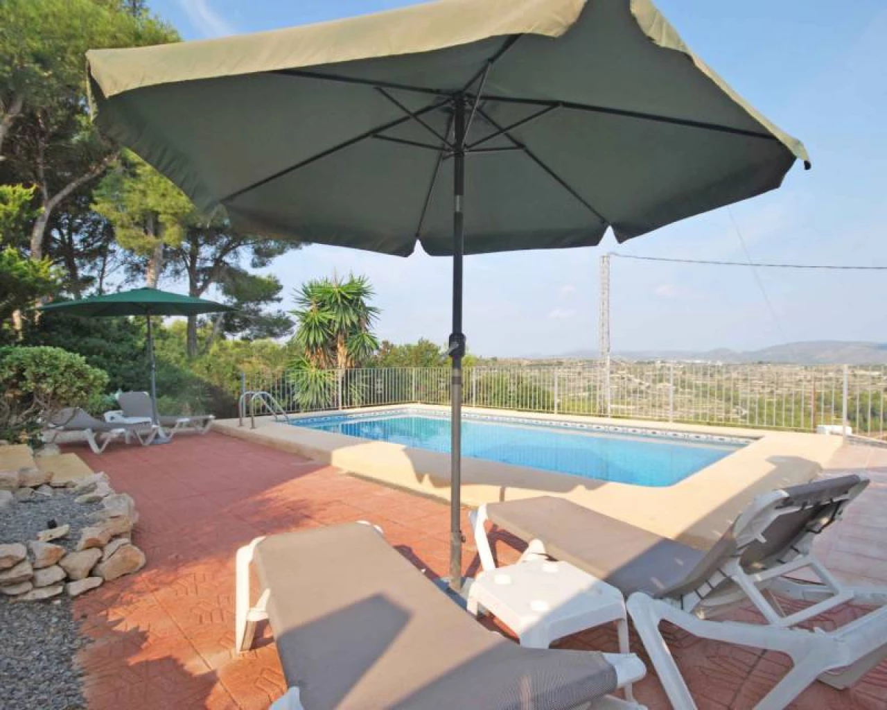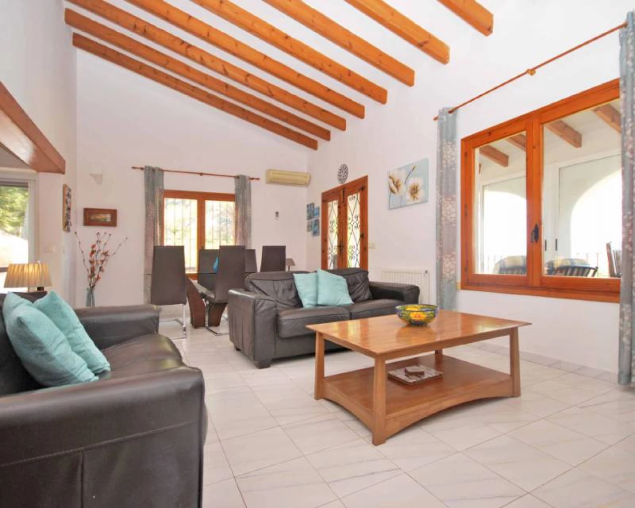 This three bedroom property offers an 8 x 4 m pool, several terraces, separate storage/laundry room, nice garden and offroad parking. The villa consists of a nice glazed in naya from which you can enjoy the fantastic mountain views, living / dining area, open plan kitchen, 3 bedrooms and 2 bathrooms, all on one level. The master bedroom has an en-suite bathroom. Further features: airconditioning, gas central heating and shutters in bedrooms.