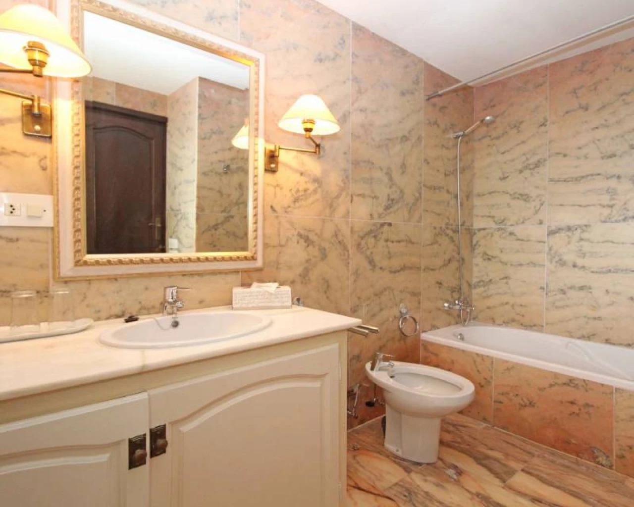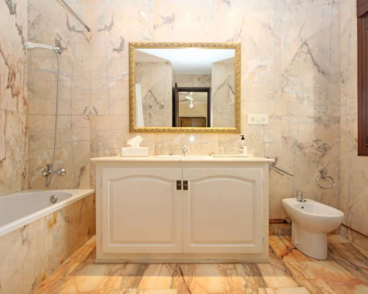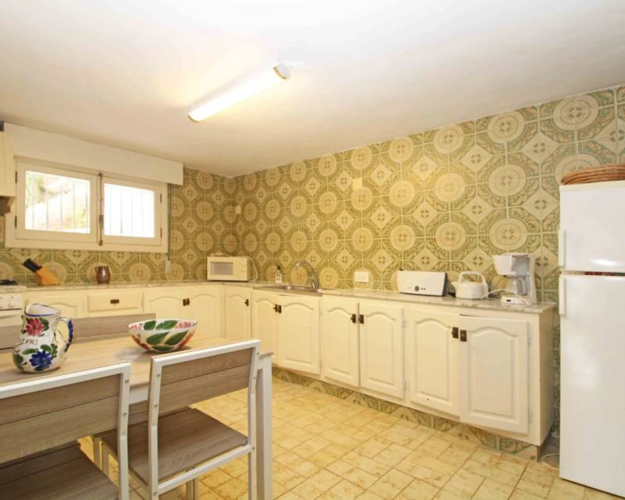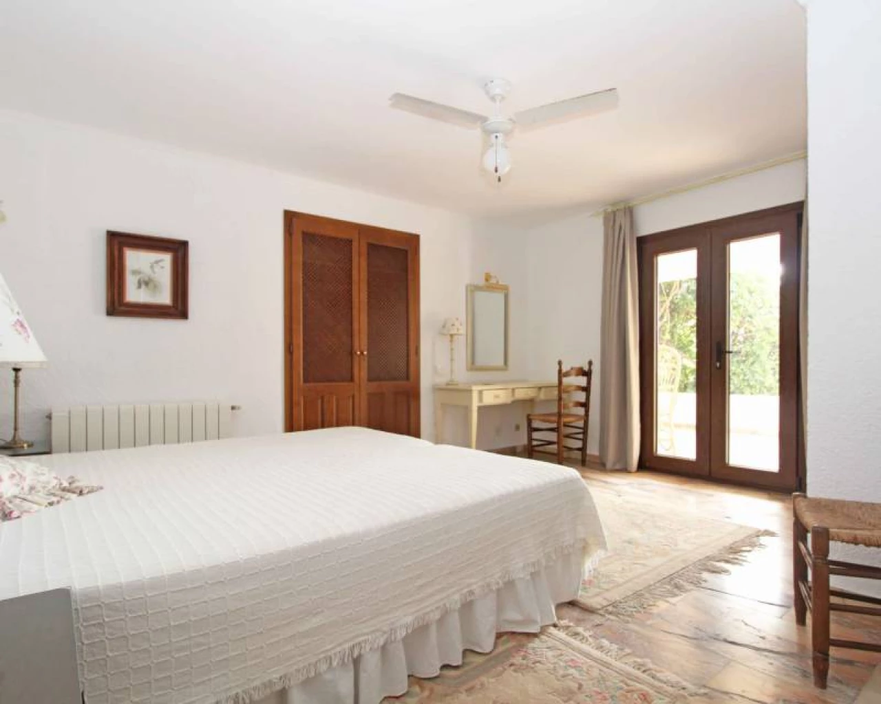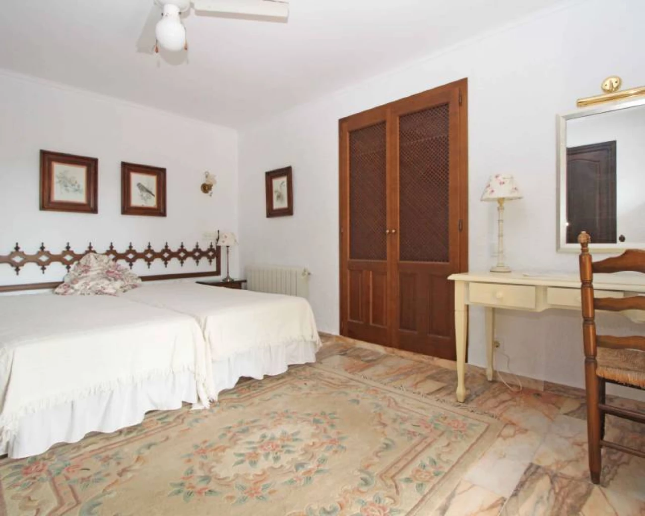 Traditional villa for sale with fantastic sea views in El Portet, Moraira. What a location! Panoramic sea views and lovely views of Moraira's marina. This villa for sale in El Portet can definitely be called generous. There are 3 floors. On the top floor we find a small living room with kitchenette and fireplace and a bedroom en-suite. Here also a terrace with barbecue. The middle level is more spacious. It has a lounge with fireplace, a dining room, kitchen and 3 bedrooms en-suite. There is a partially covered terrace. The lowest level is at pool level and consists of a living-dining room, kitchen, laundry room, storage room, toilet and a large covered terrace. Around the kidney-shaped swimming pool is a spacious sun terrace. All rooms have central heating and the bedrooms have air conditioning. Alarm system, 2 car ports (one with electric garage door) and extra storage space. In the mature garden, decorative palm trees give a Mediterranean atmosphere. Also here a barbecue and summer kitchen. A unique villa in a unique location!